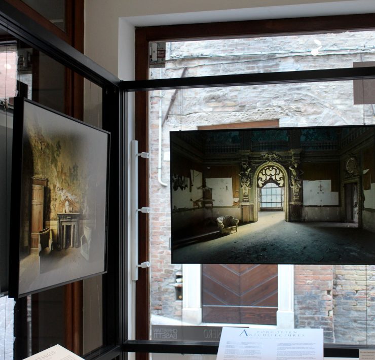 On a recent June morning, Gobbi opened his studio for visitors to observe the work of Milanese photographer Christian Basetti featured in the gallery. Faces of passersby appear in the window to look at the beautiful photograph on display. Gobbi heads upstairs to his studio to begin his workday and capture portraits of whomever is on his calendar for the day. Visitors come into the gallery to ask Gobbi about the work on display. He explains Basetti’s unique photos: As a child, Basetti admired adventure movies like the Indiana Jones series, inspiring him to photograph stunning abandoned villas all across Italy.