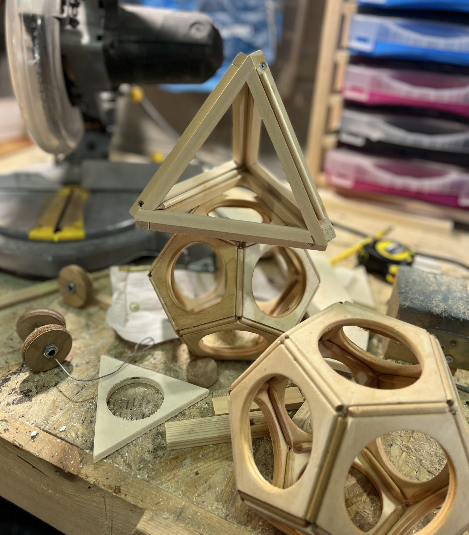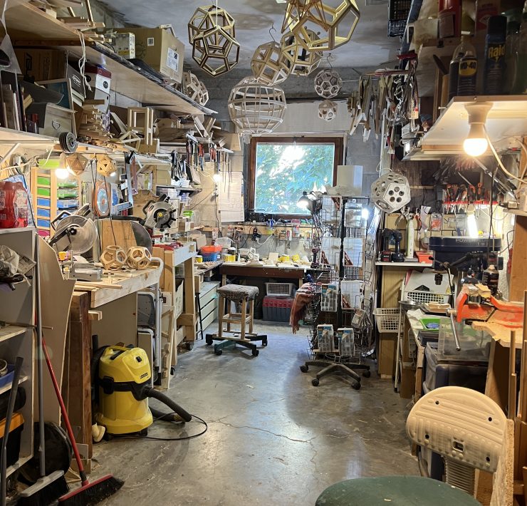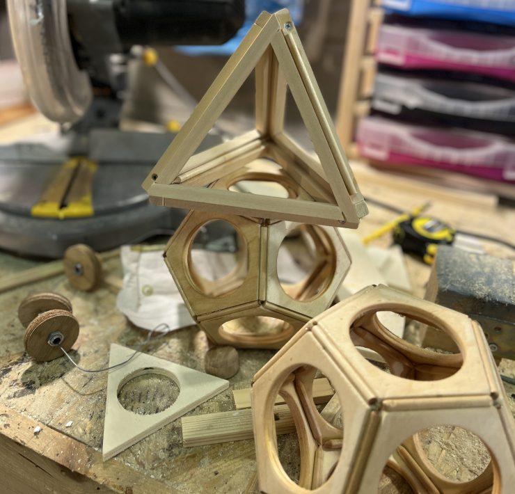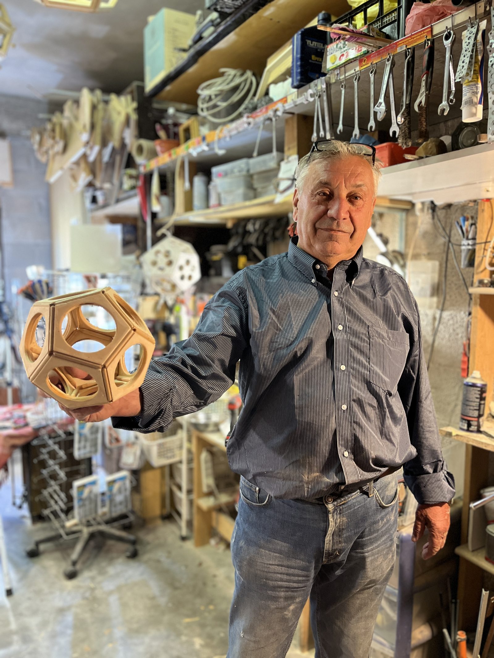 Today, Rusciadelli does not call himself an “artist,” or his work “art,” as he constructs elegant wood reproductions of the polyhedra that da Vinci drew for Pacioli’s book.
