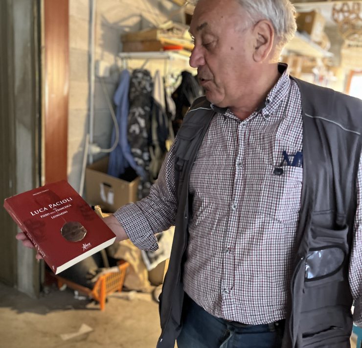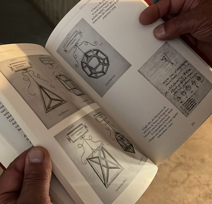 Renaissance art was not just about human figures in paint and marble. Underneath that “art” was often a new science – of mathematics. Pietro della Francesco, known for his portraits of the Duke and Duchess of Urbino, was also a mathematician. The Duke’s son was tutored by mathematician Luca Pacioli, a Franciscan friar who also taught Leonardo da Vinci mathematics. There is much history in this small town, and Rusciadelli finds himself in a unique place to reconstruct these mathematical pieces of art.