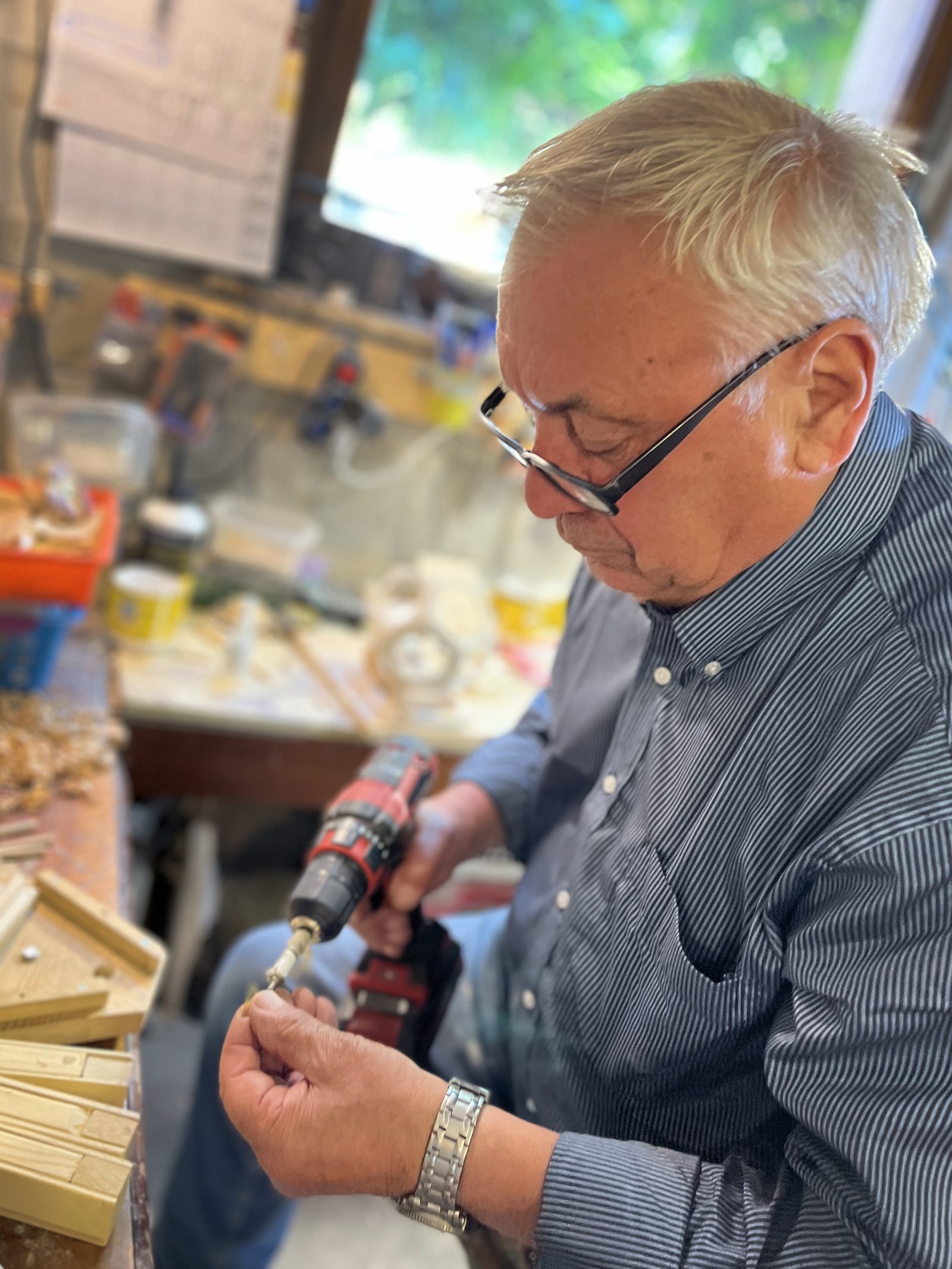 Born and raised in Urbino, Rusciadelli retired from being a factory manager. After a bad experience with his health, he now busies himself working on his polyhedron sculptures. This has been his hobby for about 10 years. He lives outside the walls of Urbino with his wife, son, daughter-in-law, and two grandsons. As a family man, he dedicates his life to making the best of his environment and its history.