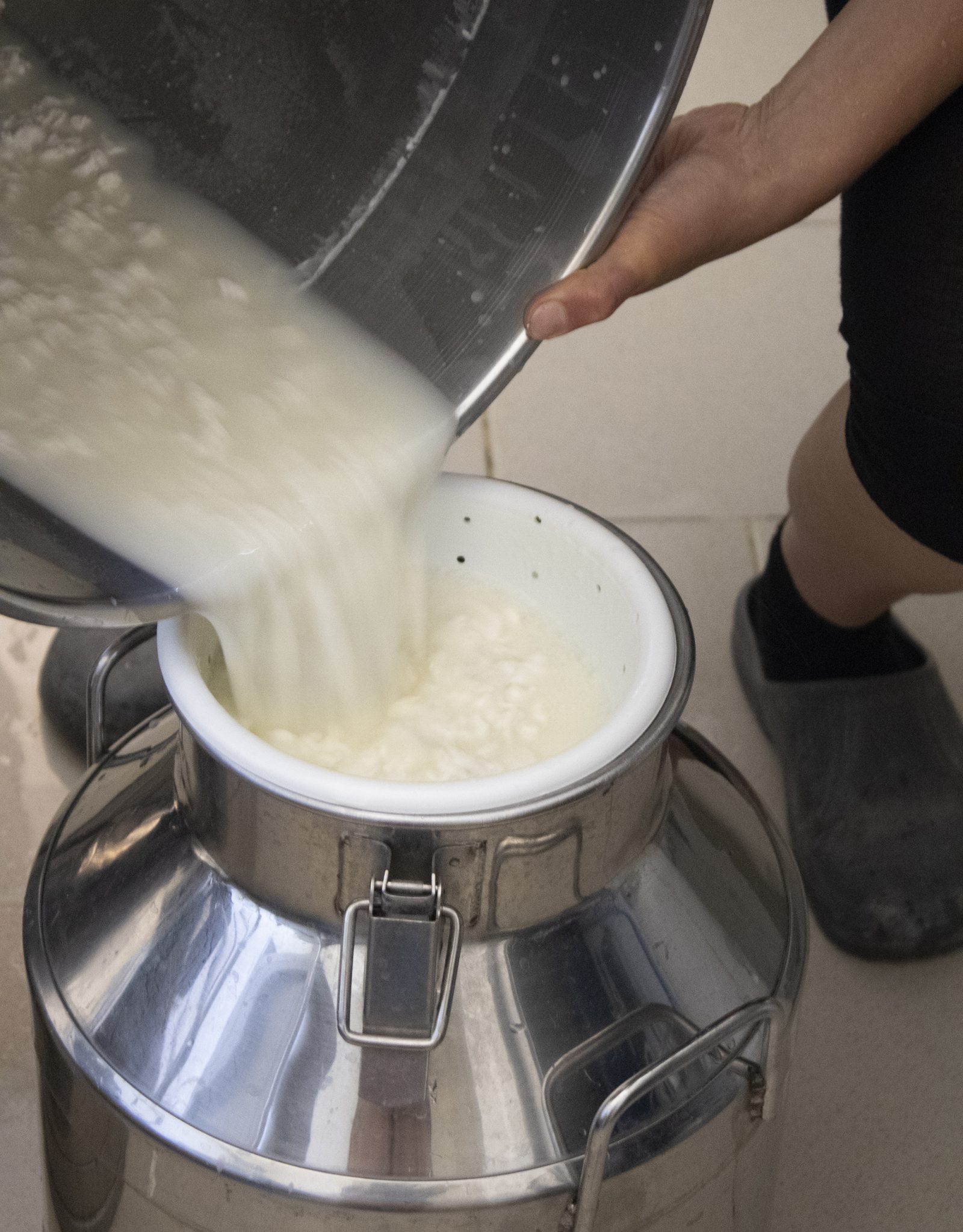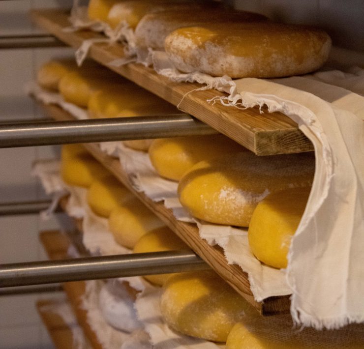 She gently cuts cheese curds to pour into molds. Moving with a familiar rhythm she explains that bureaucracy makes running a farm difficult. It doesn’t have much to do with what they provide the land and animals, it doesn’t change how they care for every calf that wanders across their beloved farm. And maybe a certification would change something, she says, but they continue to do things in a high-quality way no matter the official certification.