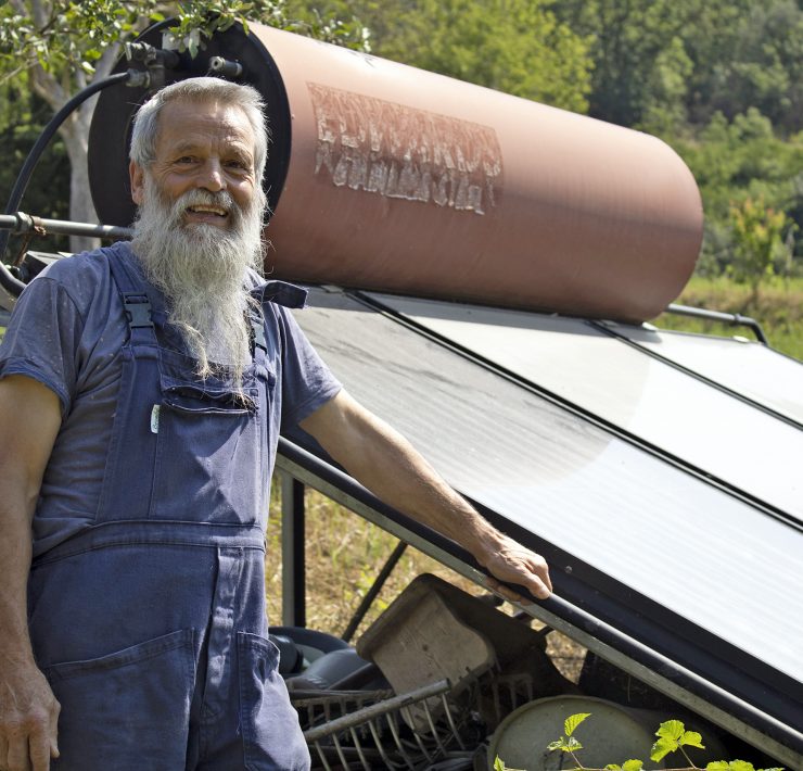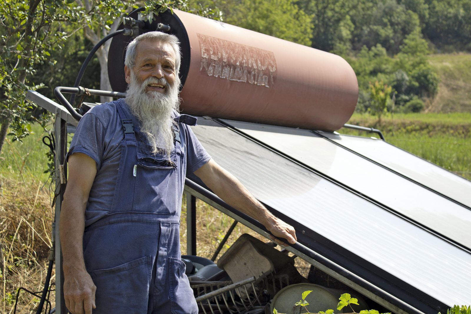 An older gentleman with an extended grey beard and a weathered face takes a break from working on housing renovations to join the conversation. He is Urs Abderhalden, Flavia’s father. He explains that when he established the farm decades ago, citizens of Italy weren’t always allowed to produce their own energy. Now, he says, it is integral to their business.