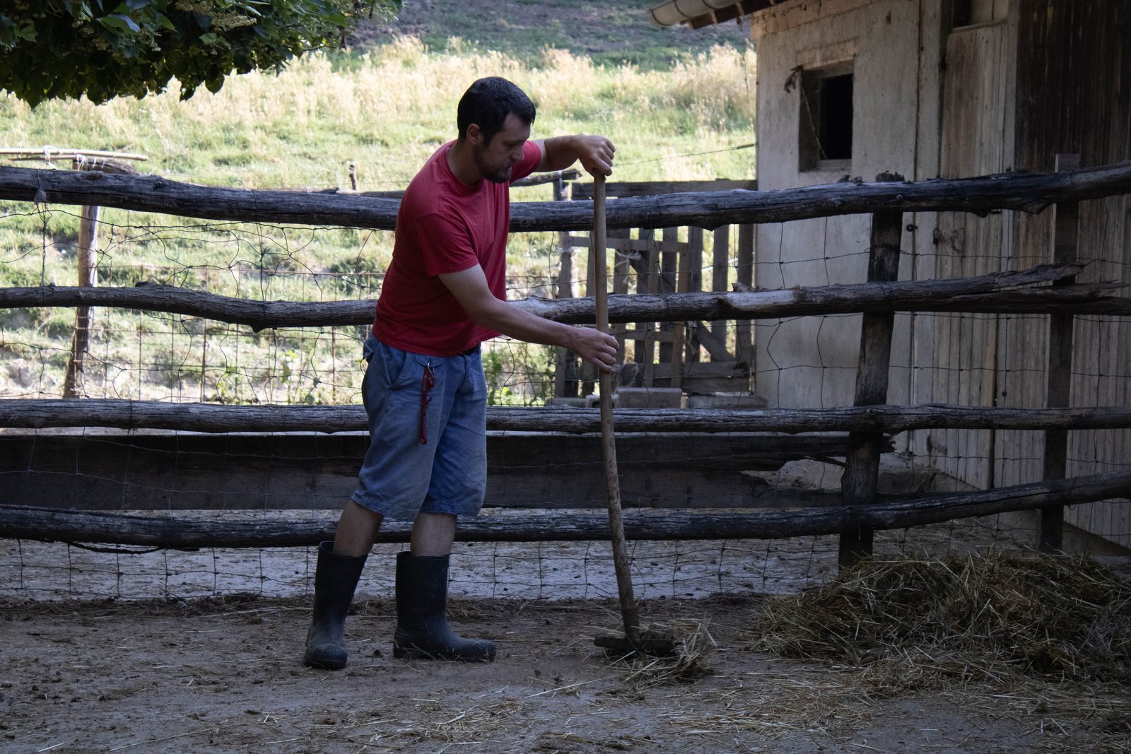 A baby goat cuddles up to Gili, attempting to nibble at his shorts. A soft smile spans his face and he begins to scratch between the little goat’s horns, “They like when you do this,” he says, encouraging the goat away from eating his shorts, “We do our best to make them comfortable. If they don’t like us, it shows in the product.”