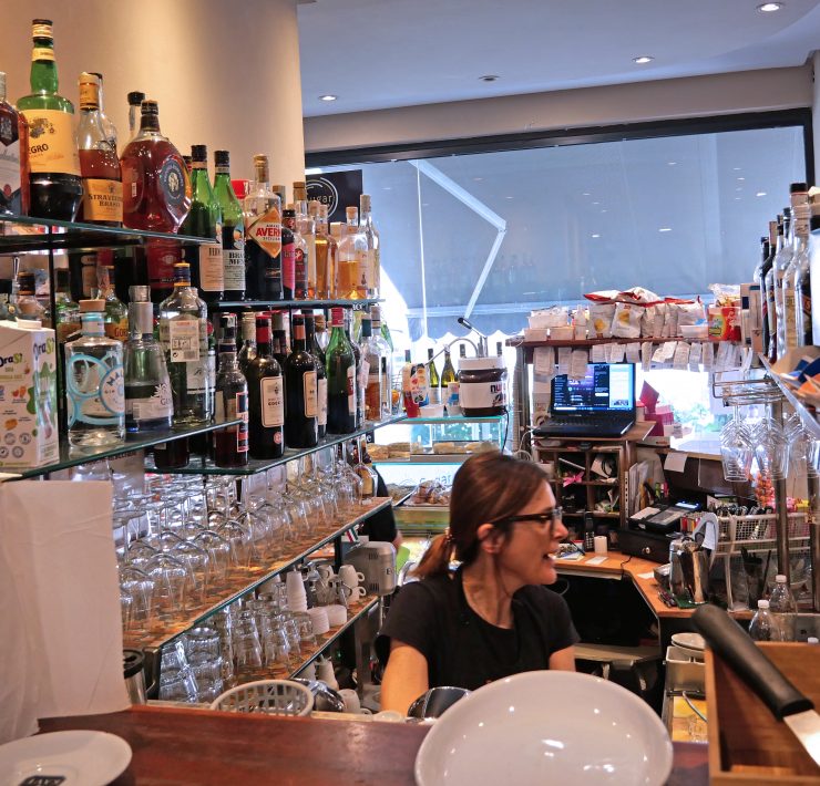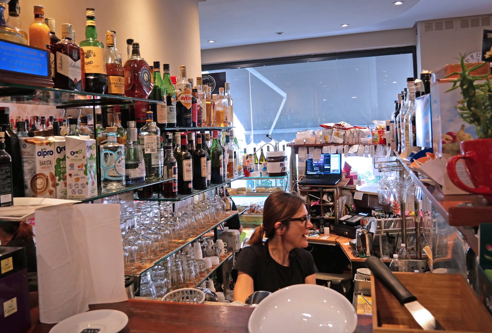 There’s always something in his hand, a steaming cup of coffee, a flaky jam-filled pastry, a tray of cups, or a box of assorted wines. Even so, he floats energetically around the cafe, his movements seemingly weightless.