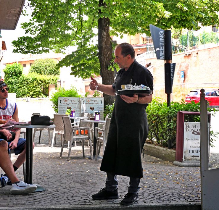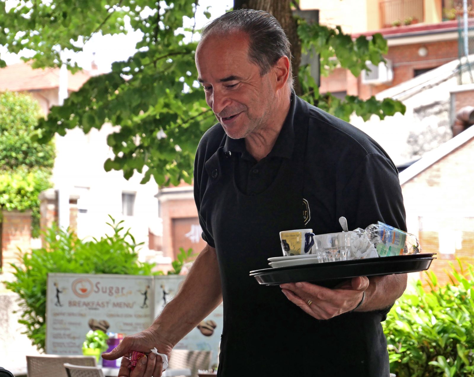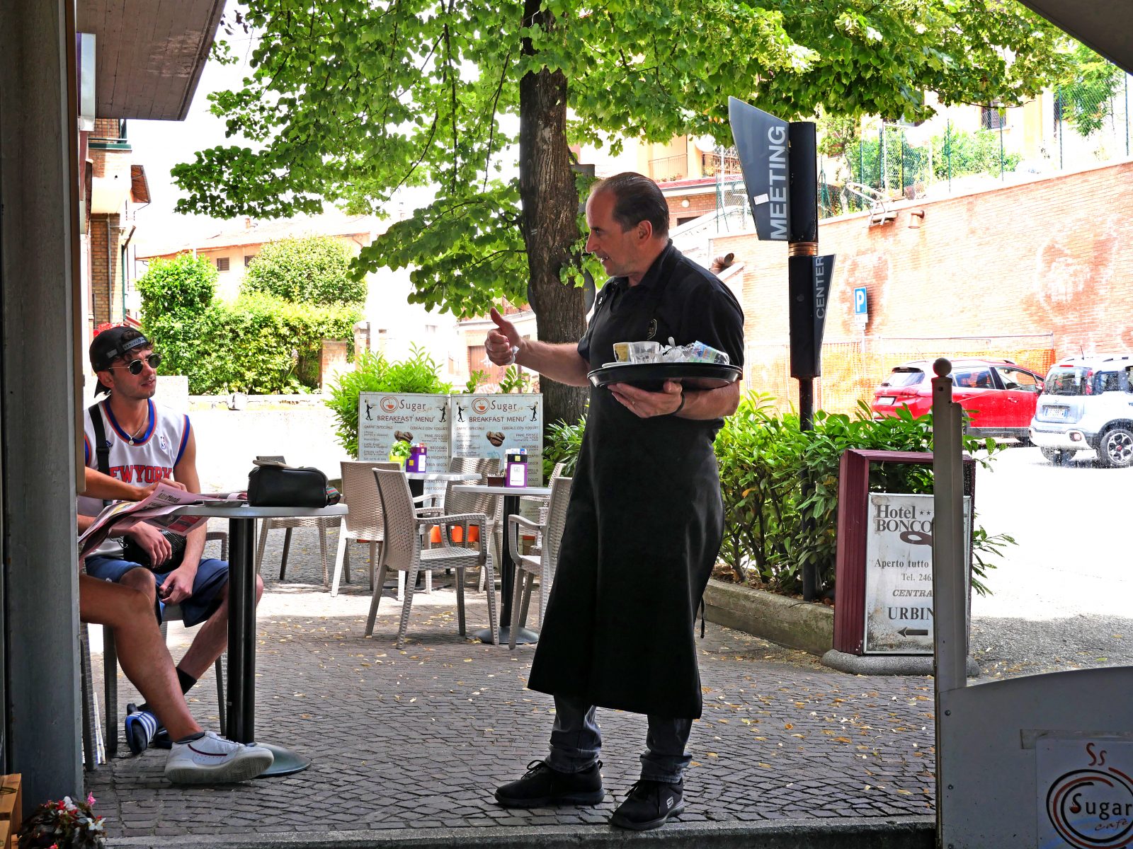 URBINO, Italy—Giovanni Garbugli darts between tables and the bar, picking up empty coffee cups and stacking them on his tray as he chats with customers and takes orders.