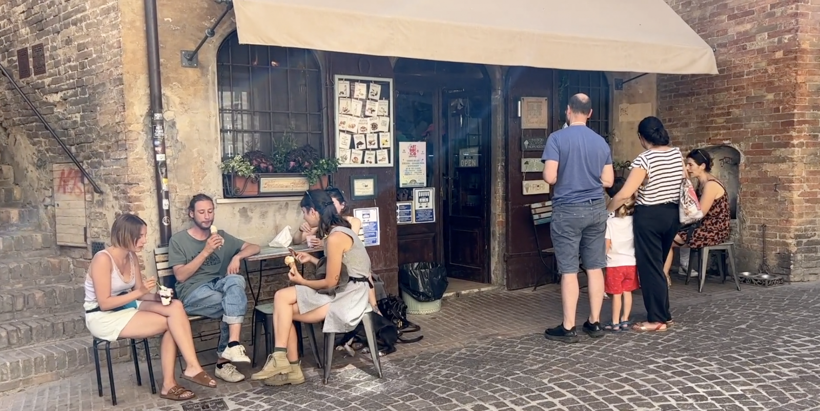 Even though I had been excited to study abroad since I started at JMU, I found myself feeling extremely nervous when I arrived at the airport in Italy. I had no idea what to expect, if I would meet people, or if I would be able to document a great story. When we arrived in Urbino I was instantly captivated by the unique beauty of the city, and I realized that even though I was uncertain about what my time here would look like, I was about to have a great adventure. I quickly fell in love with the city of Urbino, the old cobblestone streets, the food (especially crescia and gelato), the stunning views of the Italian country, and the overall lifestyle and culture here. Sitting in the piazza and just enjoying the people and always lively atmosphere became one of my favorite activities. I have been lucky enough to make some amazing Italian friends and friends within the program, travel to Venice and Sirolo, and even got to learn how to make authentic Italian gelato for my documentary! Besides getting to learn so much about a new culture, new people, and many useful photography and filmmaking skills, I also learned so much about myself. I learned that I could step out of my comfort zone and that I can create stories and connections that matter. I am forever grateful for the people I have met here and learned from, everyone who helped me get here, and the absolutely unforgettable experience I had here in Urbino. I hope to be back someday!